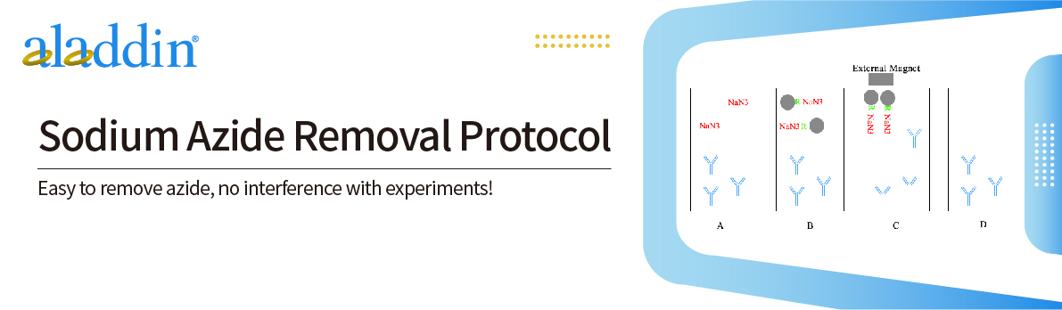 Many of Aladdin's antibody products contain sodium azide, the information of which is provided in the respective product datasheets. If the antibody is used for cell culture detection or conjugation, it is recommended to remove sodium azide from the antibody solution. Alternatively, you can also choose our carrier-free recombinant antibodies, which are free of BSA, sodium azide and glycerol and can be used directly.
